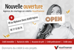 SAS BF83, agence franchisée indépendante, membre du réseau Vousfinancer, au capital de 5000 € - Immatriculée au RCS de Toulon sous le n°948998729. Siège social : 89 avenue Alphonse Denis 83400 Hyères. Courtier en opérations de banque et Courtier en assurances. Immatriculé au registre de l'ORIAS (www.orias.fr) sous le n°23003513. Responsabilité Civile Professionnelle conforme aux articles L.512-6 du Code des assurances et L519-3-4 du Code monétaire et financier. Mandataire pour le regroupement de crédit d’ASC crédits (Mandataire non exclusif nºORIAS-07006221) et d’InnoVF (mandataire non exclusif nºOrias 15006878) pour le crédit à la consommation